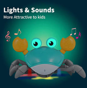 Cheerful music make all kids chase it happily. Alternatively, if you prefer a quieter environment, you can simply turn off the music and allow the toy to continue its cheerful crawl.
