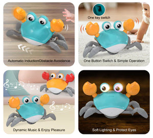 Crawling Toy can automatically sense obstacles and escape; the flexible movements are fun and easy to attract babies to crawl or chase.