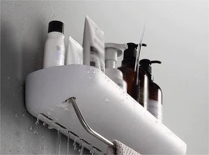 This shelf is designed to fit seamlessly in both your kitchen and bathroom, offering a strong bearing capacity to hold sponges, toiletries, cosmetics, and more with ease.