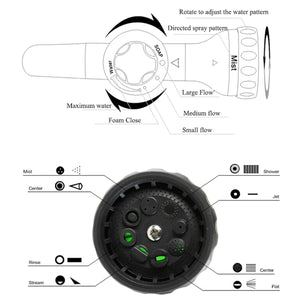 High-pressure industrial design: The car wash hose nozzle has 8 spray patterns and a soap dispenser. New design technology can concentrate water pressure to one point, spray distance up to 6-10 meters.