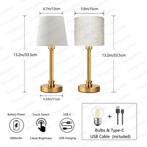 ⭐【The metal round】The total height of this wireless light is 33.5cm/13.2inch. Metal body and white fabric lampshade, more elegant and textured in soft light, suitable for living room, bedroom, dining room, coffee bar, balcony, porch, corridor.