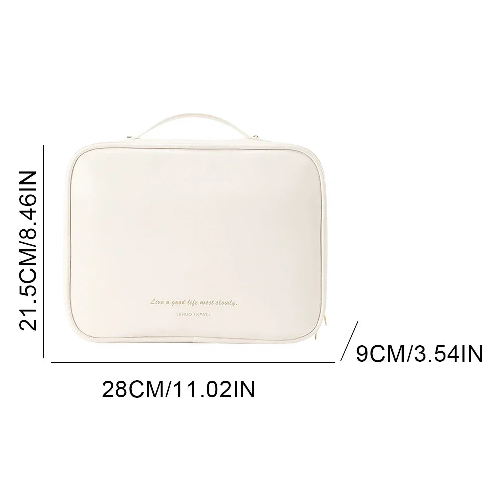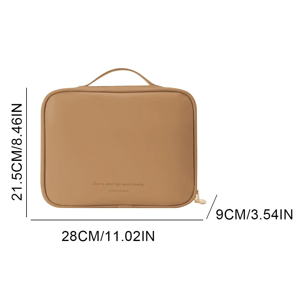 Multi-Compartment Travel Makeup Bag Portable PU Large Wash Bag Large Capacity Make Up Storage Bag Outdoor Makeup Bag