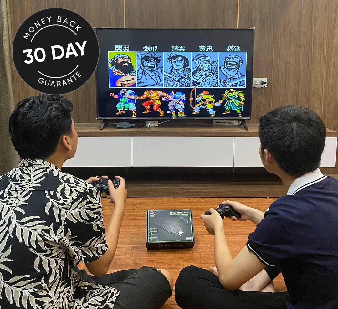 With two wireless gamepads, it's perfect for hosting game nights with loved ones. It offers hours of entertainment for all ages, reliving classic moments or introducing kids to childhood games.