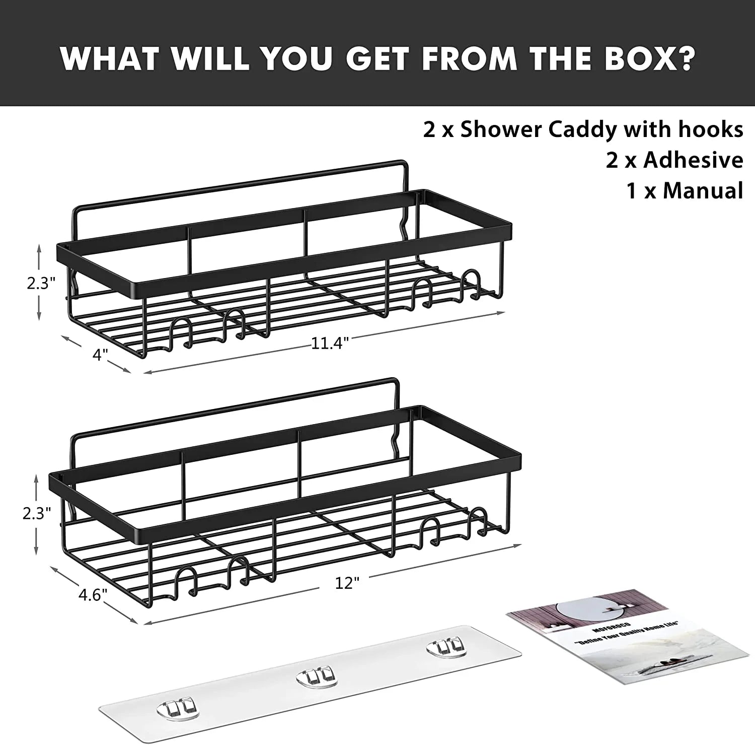 ✅ FLEXIBLE HOOK - There are four hooks on each shelf, which can be used to hang razors, foaming balls, sponges and other shower products. They can help you make better use of every inch of space.