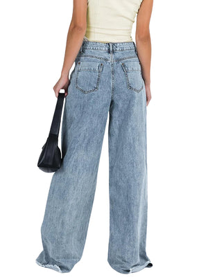 Solid color, loose fit women's jeans, zip fly and button, stretchy casual wide leg pants, can be worn by women of all shapes, fashionable streetwear, let you show your figure perfectly.